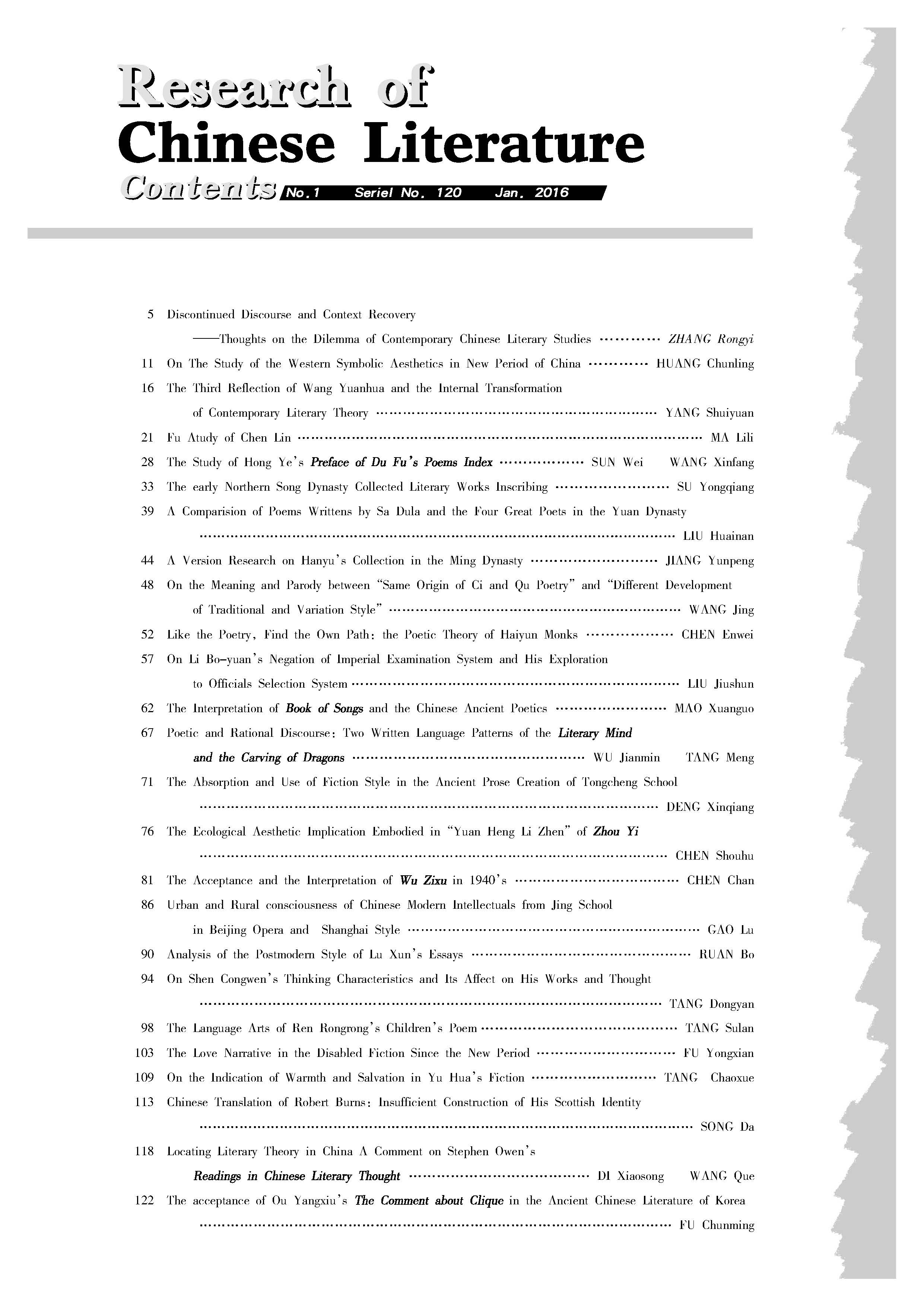 《中国文学研究》2016第二期(总121期)(补)