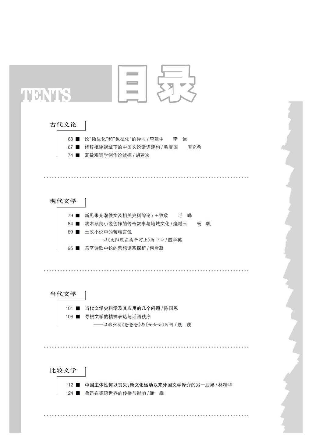 《中国文学研究》2017-4目录