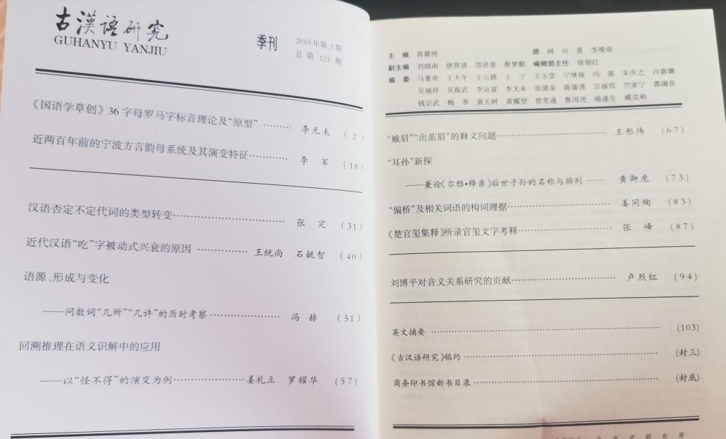 《古汉语研究》2019年第2期(总第123期)