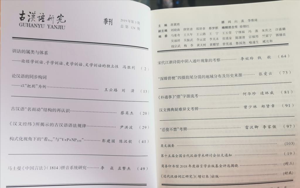 《古汉语研究》2019年第3期(总第124期)