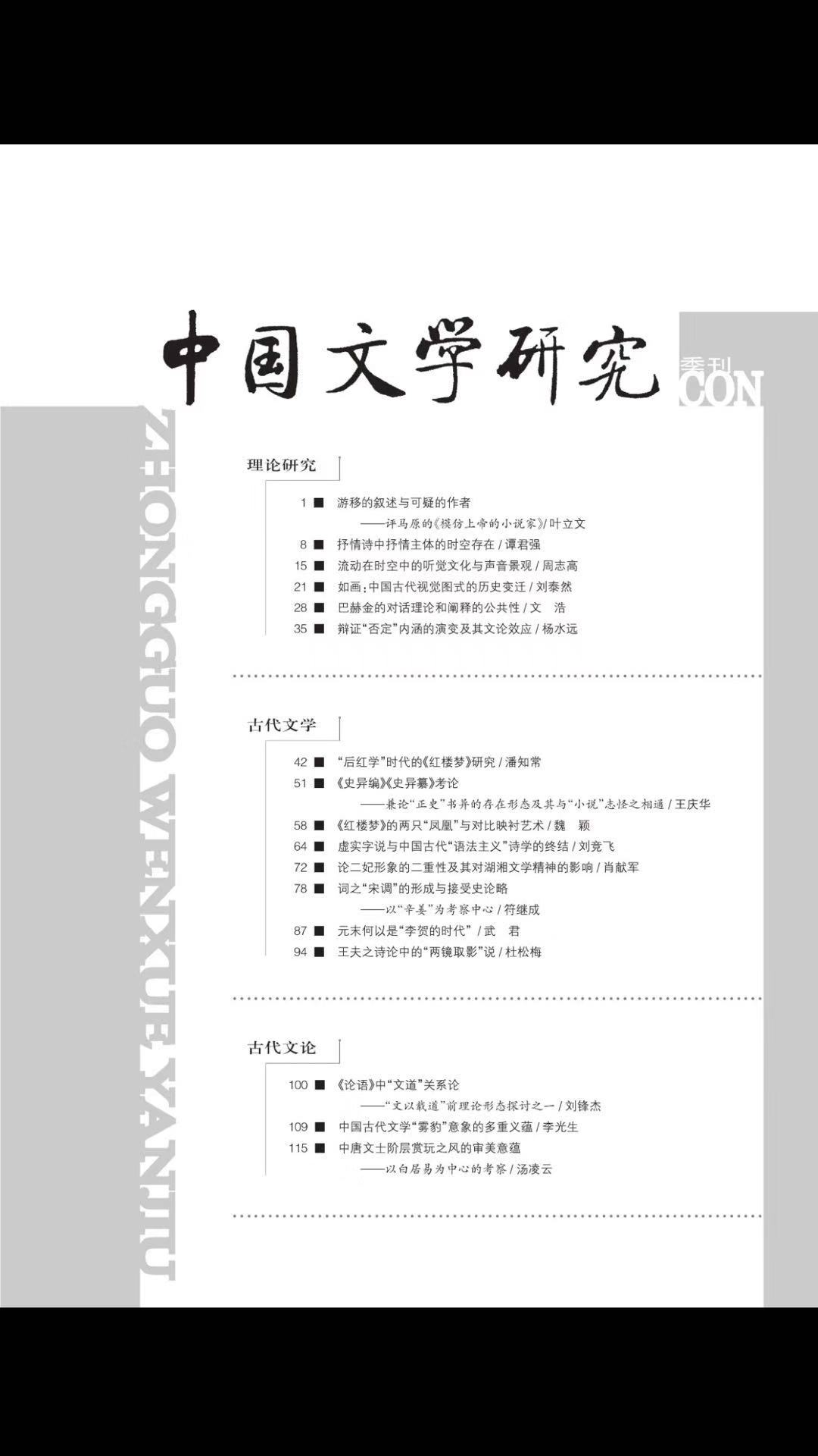 《中国文学研究》2019-1目录