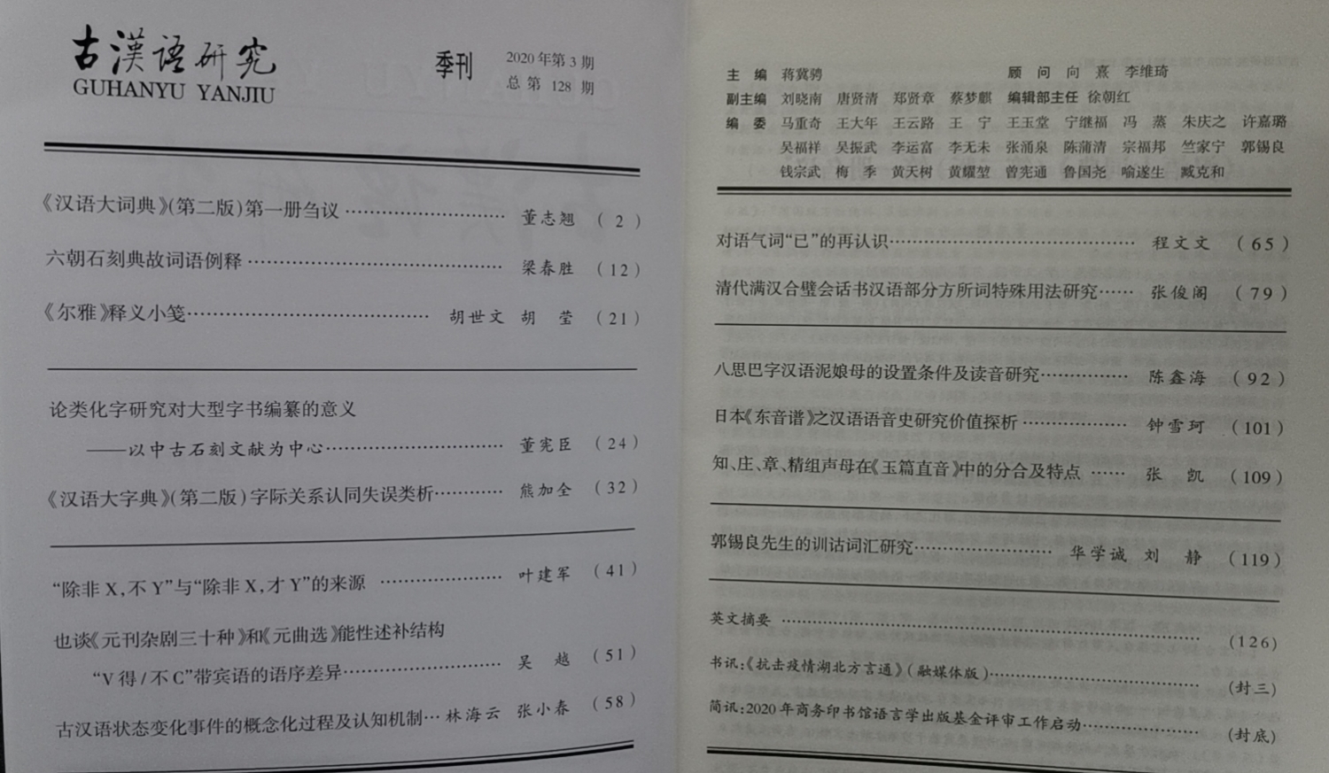 《古汉语研究》2020年第3期(总128期)