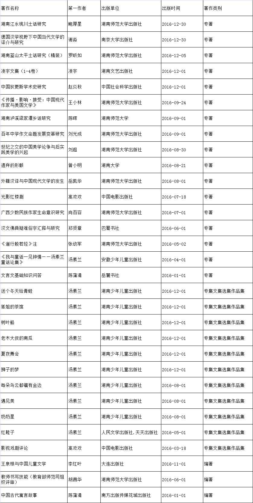 2016年出版的学术著作一览表