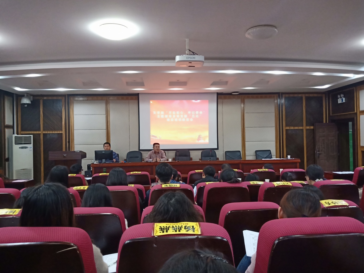 2019年11月5日晚7点,公司在216报告厅召开“不忘初心、牢记使命”主题教育和党支部“五化”建设工作培训推进会。公司党委书记李伶俐、公司党委委员肖百容、公司党委办主任夏云飞、各支部书记、委员全部参加了会议,会议由公司党委副书记熊剑峰主持。
