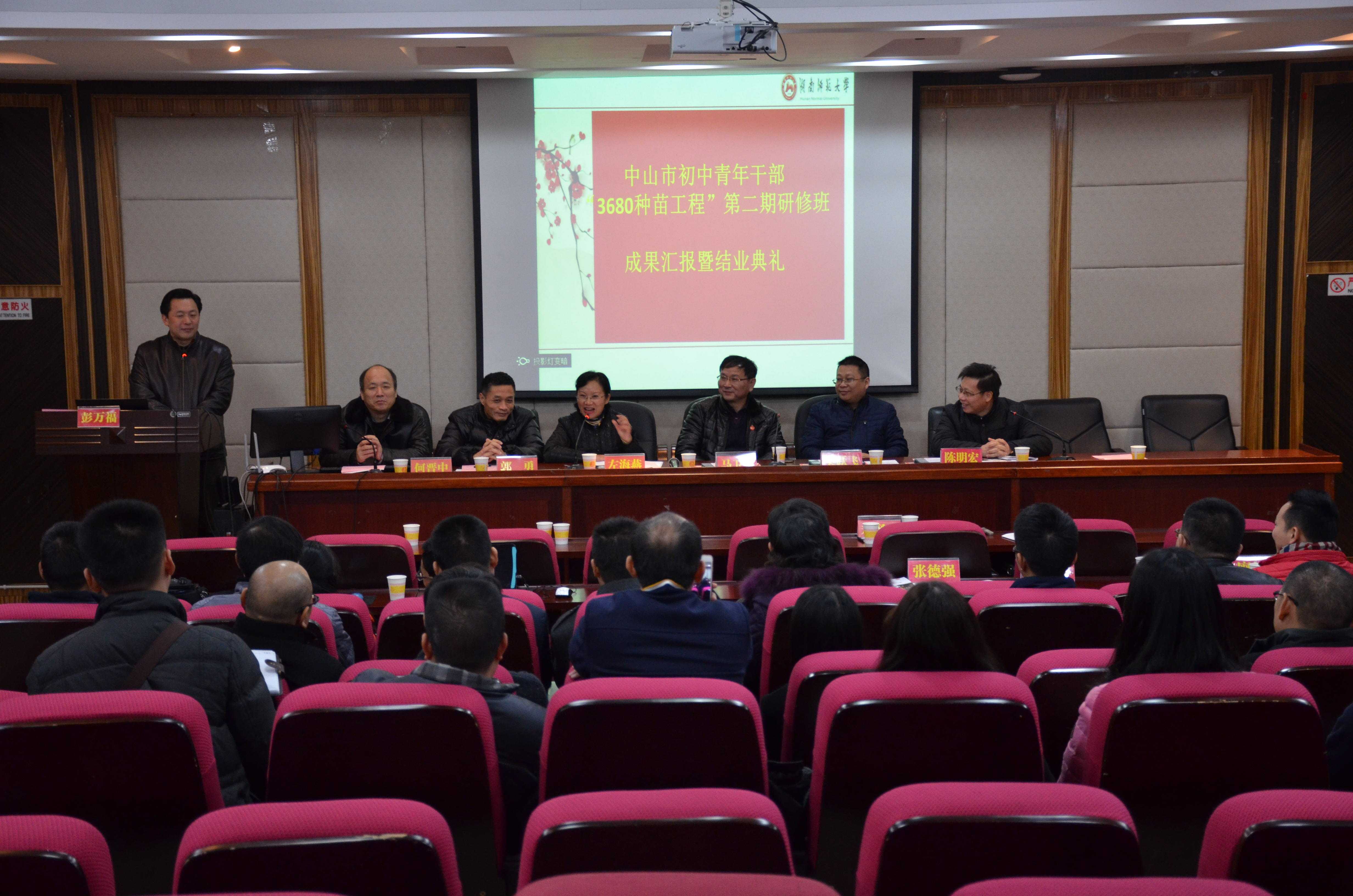 2016年11月24日下午,中山市初中青年干部“3680种苗工程”第二期研修班成果汇报暨结业典礼在216学术报告厅隆重举行。中山市教体局左海燕调研员,教体局人事科郭勇科长,中山市公司产品研究室主任、广东省特级教师何晋中,中山市公司产品研究室教研员、广东省特级教师陈明宏,公司继续教育公司经理、博士生导师马卫平教授,继续教育公司吴跃飞副经理,继续教育公司培训科张雪梅科长、信息管理科张静科长,sunbet申搏成教办张德强主任,研修班班主任廖加丰,成教办干事余婵等出席,北京市朝阳区60位中小学骨干教师以及中山市初中青年干部“3680种苗工程”第一期18位学员一同参加观摩。典礼由sunbet申搏副经理彭万福主持。
