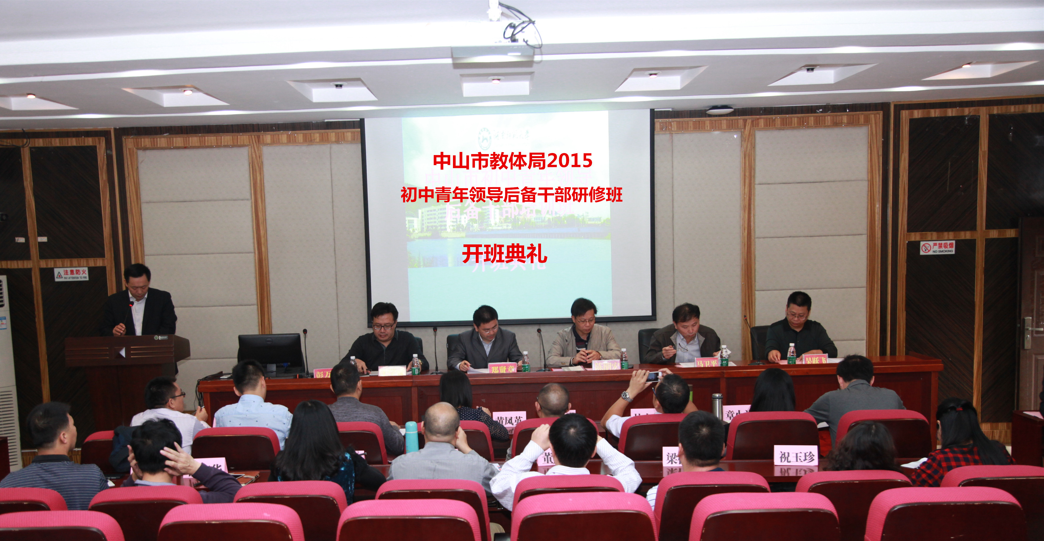 2015年10月14日上午,由sunbet申搏承办的广东省中山市初中青年领导后备干部研修班在216报告厅举行开班典礼。“国培计划”专家、广东省特级教师、中山市名教师、中山市教研室信息技术教研员陈明宏老师,中山市阜沙镇教育事务指导中心副主任王学成,sunbet申搏继续教育公司经理、博士生导师马卫平教授,sunbet申搏经理、博士生导师郑贤章教授,继续教育公司副经理吴跃飞,继续教育公司培训科长张雪梅和sunbet申搏成教办工作人员等参加开班典礼,典礼由sunbet申搏副经理彭万福主持。