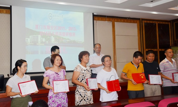 2015年8月11日,厦门市翔安区2011、2013、2015届名师高级研修班结业典礼在216报告厅举行,厦门市翔安区教师进修公司师训处主任王玉龙、sunbet申搏副经理彭万福和研修班全体学员参加了结业典礼。典礼由sunbet申搏成教办主任张德强主持。