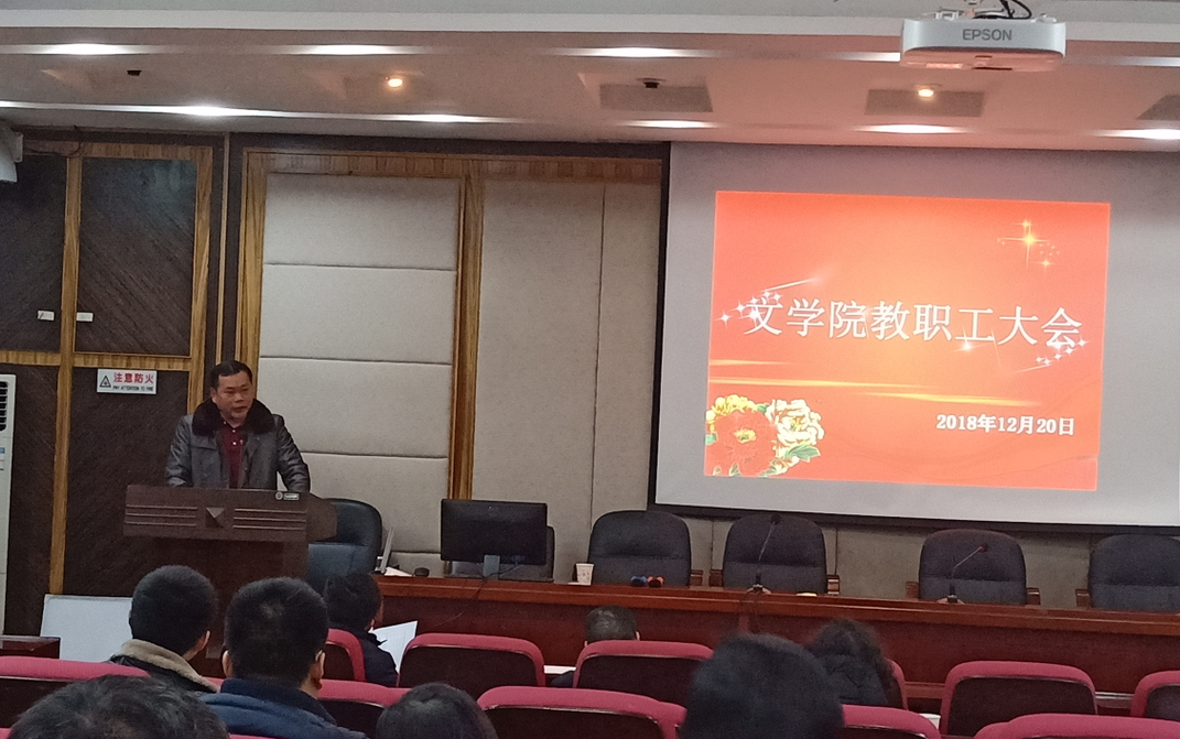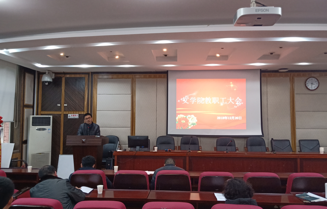 12月20日下午,公司在216报告厅召开教职工大会,宣讲上级有关精神,安排期末工作,会议由经理郑贤章主持。