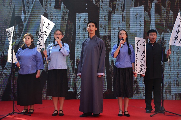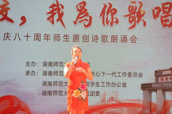 回顾公司历史、回忆在校生活是此次诗歌朗诵会的主题。朗诵会以汉韵学社的汉服团扇舞开场,为观者带来美的享受。《八十芳华赋》紧随而至,以情景剧配合朗诵的形式再现了湖南师大由创建到辗转变迁的伟大历程。“人生的瞬间千千万”,但老师与学子间的脉脉情深是员工们脑海中常常播放的影像。《老师,请您再为我们上课》的朗诵者们对在校读书岁月的思念之情溢于言表,也唤起了在场员工们的共情。《樟园小雅》、《诗意年华》以樟园为灵感,展现文院人才华横溢、力求真知的精神风貌。