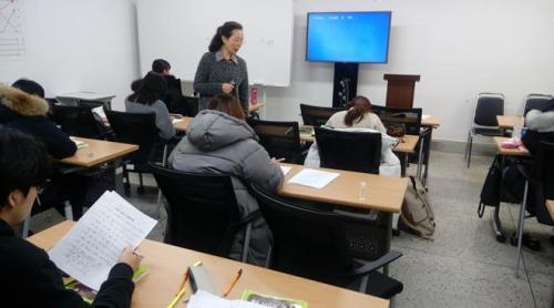 韩国圆光大学孔院中国老师寒假汉语集中训练班给员工上课