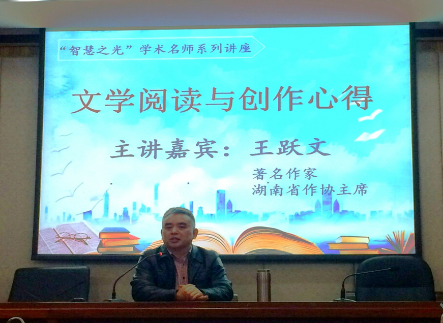 (通讯员张明 樊婧)11月28日下午,sunbet申搏“智慧之光” 学术名师系列讲座在216教室举行。著有《国画》、《大清相国》、《朝夕之间》等作品的湖南省作家协会主席、中国作协主席团委员、“湖南省德艺双馨艺术家”、“全国文化名家”及“四个一批人才”、“鲁迅文学奖”得主王跃文先生,做客sunbet申搏,为一百多名研究生带来了题为“文学阅读与创作心得”的讲座。出席讲座的有sunbet申搏纪委书记唐贤清、公司党委书记李伶俐,sunbet申搏经理郑贤章、副经理岳凯华、肖百容。sunbet申搏赵树勤教授主持讲座。