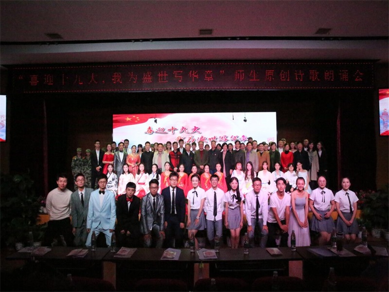 一曲大合唱《我和我的祖国》将晚会推向高潮,在高亢的歌声和经久不息的掌声中,“喜迎十九大,我为盛世写华章”师生原创诗歌朗诵会圆满结束。