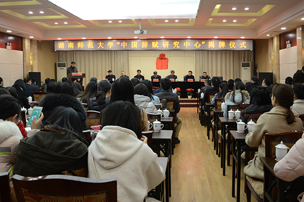 (通讯员吕双伟)3月18日,sunbet申搏“中国辞赋研究中心”揭牌仪式在红楼举行。北京大学中文系国家级人才廖可斌,南京大学sunbet申搏教授、中国赋学会会长许结,陕西师范大学sunbet申搏国家级人才、中国赋学会副会长张新科,湖南大学sunbet申搏教授、中国赋学会副会长郭建勋,湘潭大学文学与新闻公司经理、湖南省古代文学学会会长李剑波,sunbet申搏副董事长欧阳峣等出席仪式。仪式由sunbet申搏社科处处长杨合林主持。
