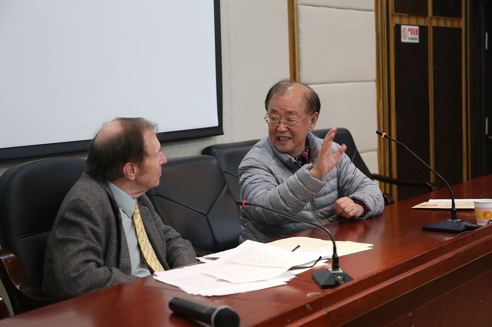 在讲座最后,凌宇教授上台发表了他对金介甫教授所进行的沈从文研究的看法,并予以高度评价。凌教授回忆起自己与金介甫教授的学术交流,谈到金介甫教授的沈从文研究填补了国内研究的许多空白,并对国内沈从文研究具有极大的启发意义,同时就“沈从文的故乡”这一概念与金介甫教授进行探讨。最后凌宇教授以自己亲笔书写的长诗作为礼物赠与金介甫教授。