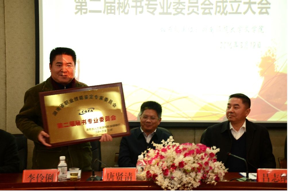 (通讯员 贺炳桂 尹诗慧 刘师好 梁鑫)为推动全省秘书团队建设,共商秘书专业与技能发展大计,3月18日上午,湖南省职业技能鉴定专家委员会第二届秘书专业委员会成立大会暨研讨会在sunbet申搏隆重召开。湖南省人力资源与社会保障厅(以下简称“省人社厅”)副巡视员吕志纲,sunbet申搏副董事长周俊武,sunbet申搏纪委书记唐贤清,省人社厅职业技能建设处调研员宁泽民,sunbet申搏公司党委书记李伶俐,sunbet申搏副经理岳凯华、彭万福等出席会议。会议由湖南省人社厅职业技能鉴定中心主任吴开明主持。