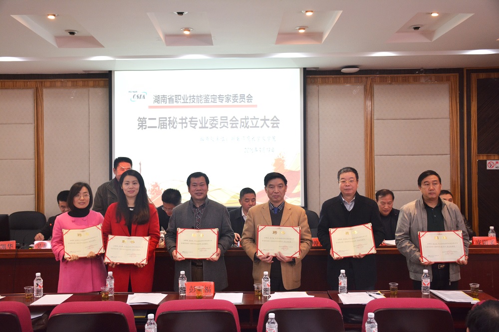 宁泽民宣读《关于调整成立湖南省职业技能鉴定专家委员会第二届秘书专业委员会的通知》和委员名单,岳凯华任第二届秘书委员会主任,李中标等5人任副主任,黄乐平任秘书长,邓石华等10人任专家委员。