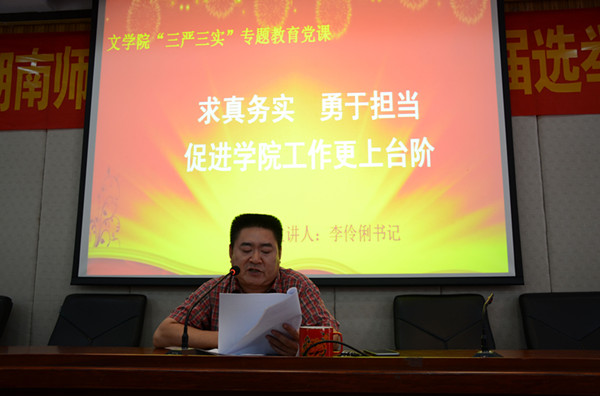 公司党委书记李伶俐以《求真务实,勇于担当,促进公司工作更上台阶》为题,从准确把握“三严三实”的深刻内涵和精神实质,深刻领会和认识开展“三严三实”专题教育的重大意义,认真查找“不严不实”的现实表现,立行立改,自觉践行“三严三实”,促进公司工作更上台阶等四个方面展开。李伶俐要求公司党员干部切实做好专题教育有关工作,力争教育出效果,工作出成绩,公司上台阶。