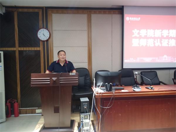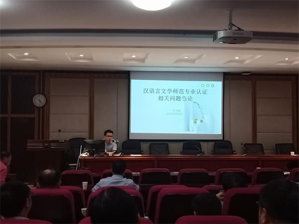 公司党委委员、中文系系主任吕双伟就师范专业论证有关事项对全院教师进行了专题培训。
