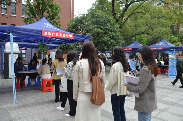 招聘会现场气氛热烈。长沙雅礼教育集团、湖南师大附中博才实验中学、湖南广益实验中学、湖南师大附中思沁公司、长郡教育集团文郡洋沙湖中学等35家用人单位到场开展招聘工作,涵盖教育、管理、医疗等多个领域,并提供近300个就业岗位。前来应聘的毕业生们认真浏览各个企业单位的基本信息,按队列主动询问招聘具体要求,积极与用人单位交流想法,用人单位也同应聘者热情交流,解答疑问。