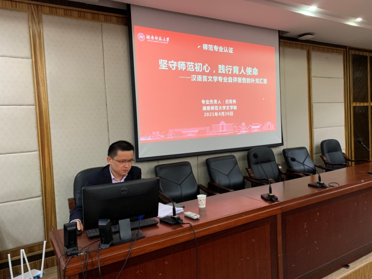 为确保公司汉语言文学专业师范认证工作顺利圆满完成,4月26日,公司副董事长刘子兰、评建办主任银海强、教师教育公司经理宋善炎等领导组成评审专家组莅临公司,进行师范专业认证工作全面督查指导,公司党委书记李伶俐、副经理岳凯华、副书记熊剑峰、中文系主任吕双伟及公司相关科室、汉语言文学专业教研室主任和部分主干课课程教师参加了本次会议,会议由公司评建办主任银海强主持。