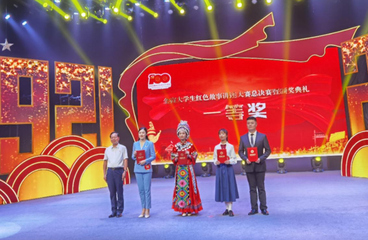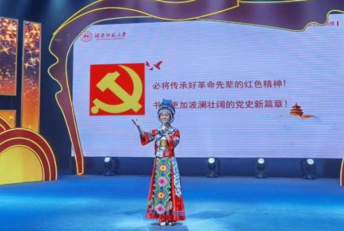 比赛现场,参赛选手们以湖湘革命先辈、开国将帅、英雄模范和在百年党史历程中具有重大影响的历史事件为基本素材,紧扣红色主题,从自身独特视角出发,讲述红色故事。公司sunbet申搏硕士研究生江静雪第一位出场,以《一首湘西民歌的家国情》为题,深情讲述了湘西土家民歌《马桑树儿搭灯台》背后集思想性、故事性、教育性于一体的红色故事,生动诠释了在百年党史中中国共产党员的初心使命与家国情怀,感动了在场所有评委与观众,最终荣获全省最高奖。