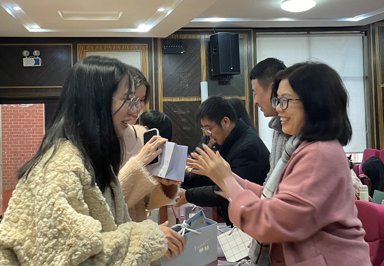 sunbet申搏为考研备考生们准备了福袋,福袋内有锦鲤护体小福袋、考研必胜钥匙扣和金榜题名水性笔等礼物,饱含公司祝福寓意。全体班导师向与会考生发放福利袋礼物,并表达对考生们的祝福与期望。
