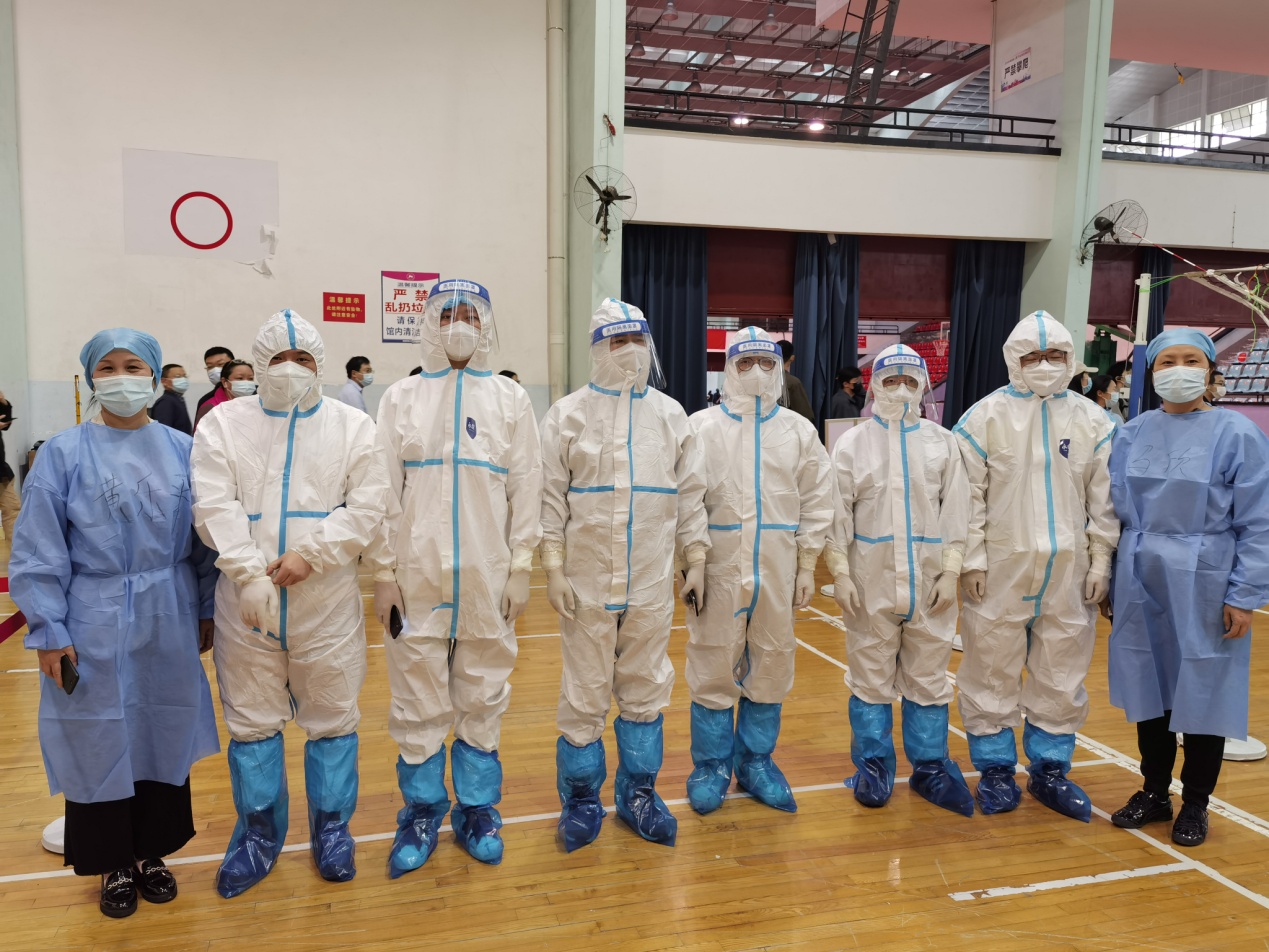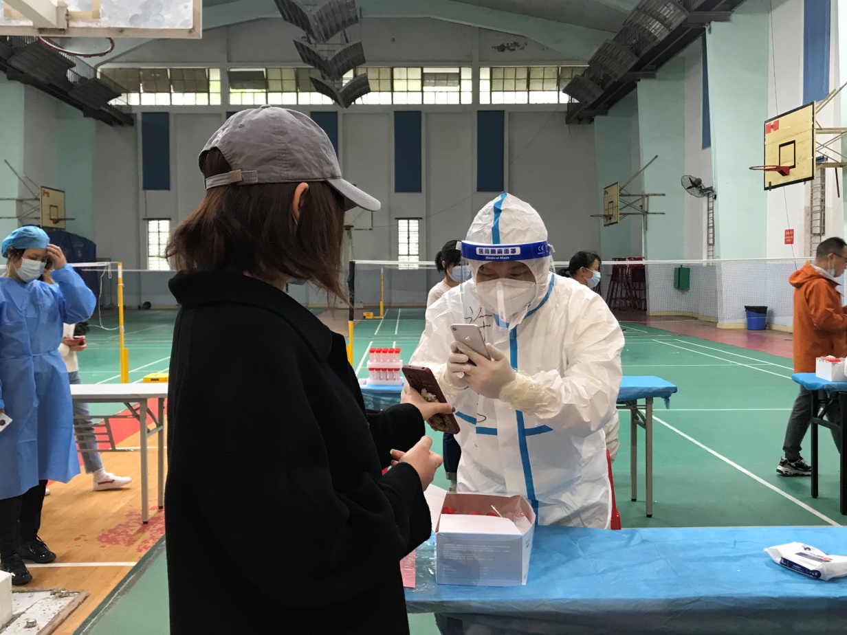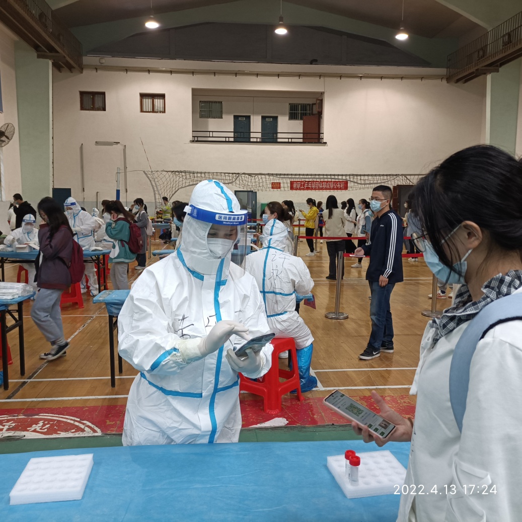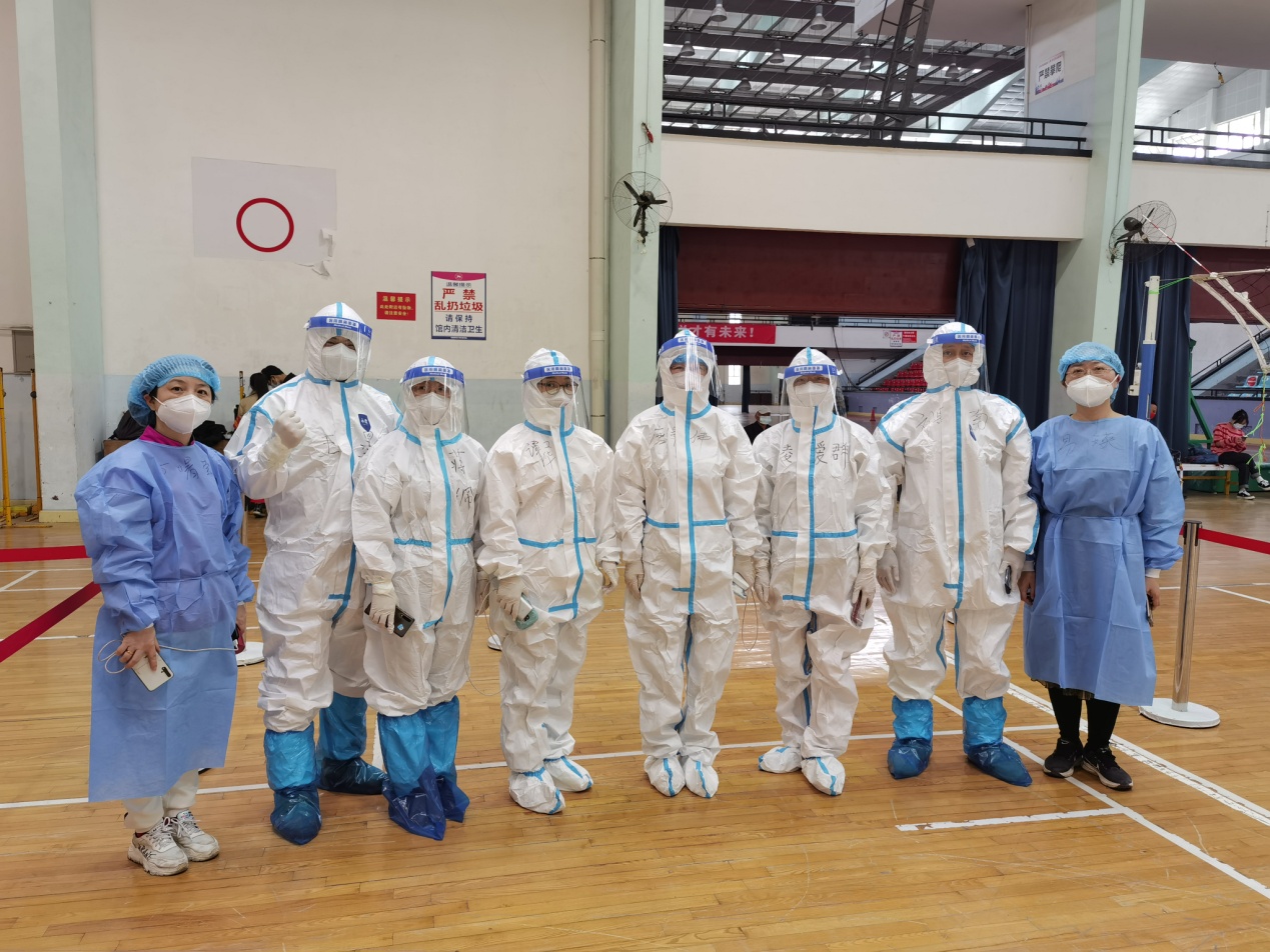 sunbet申搏黄乐平、易瑛、许永宁三位党员老师以及公司党委副书记刘宓蜜第一时间响应,报名参加志愿协助工作。并分别于13日和14日在体育馆配合专职医护人员做好核酸抽检的服务工作。