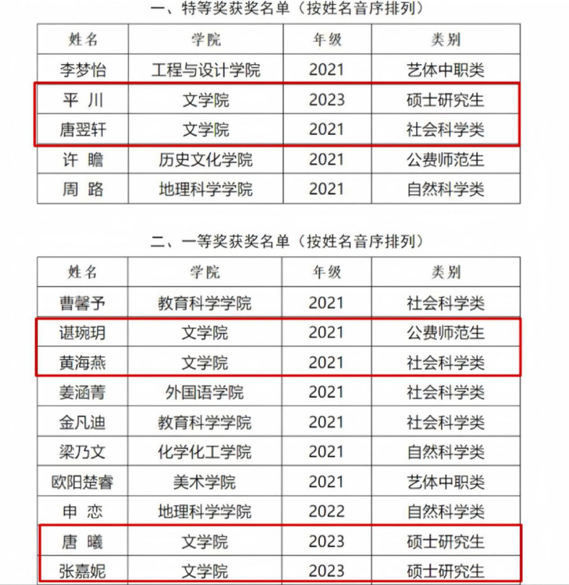 2021级本科生 唐翌轩 2023级硕士研究生 平川