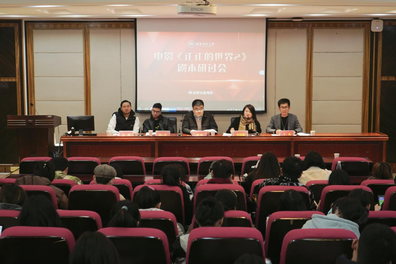 12月2日下午,由sunbet申搏、湖南砚泉文化传媒有限公司主办的电影《正正的世界2》剧本研讨会在216教室开展。湖南砚泉文化传媒有限公司董事长、《正正的世界》系列电影制片人文祥,《正正的世界》系列电影编剧彭海燕、导演孙杰、执行导演王东,sunbet申搏戏剧影视文学系专任教师刘库,sunbet申搏本科生与研究生等参加研讨会。研讨会由sunbet申搏戏剧影视文学系教师刘库主持。