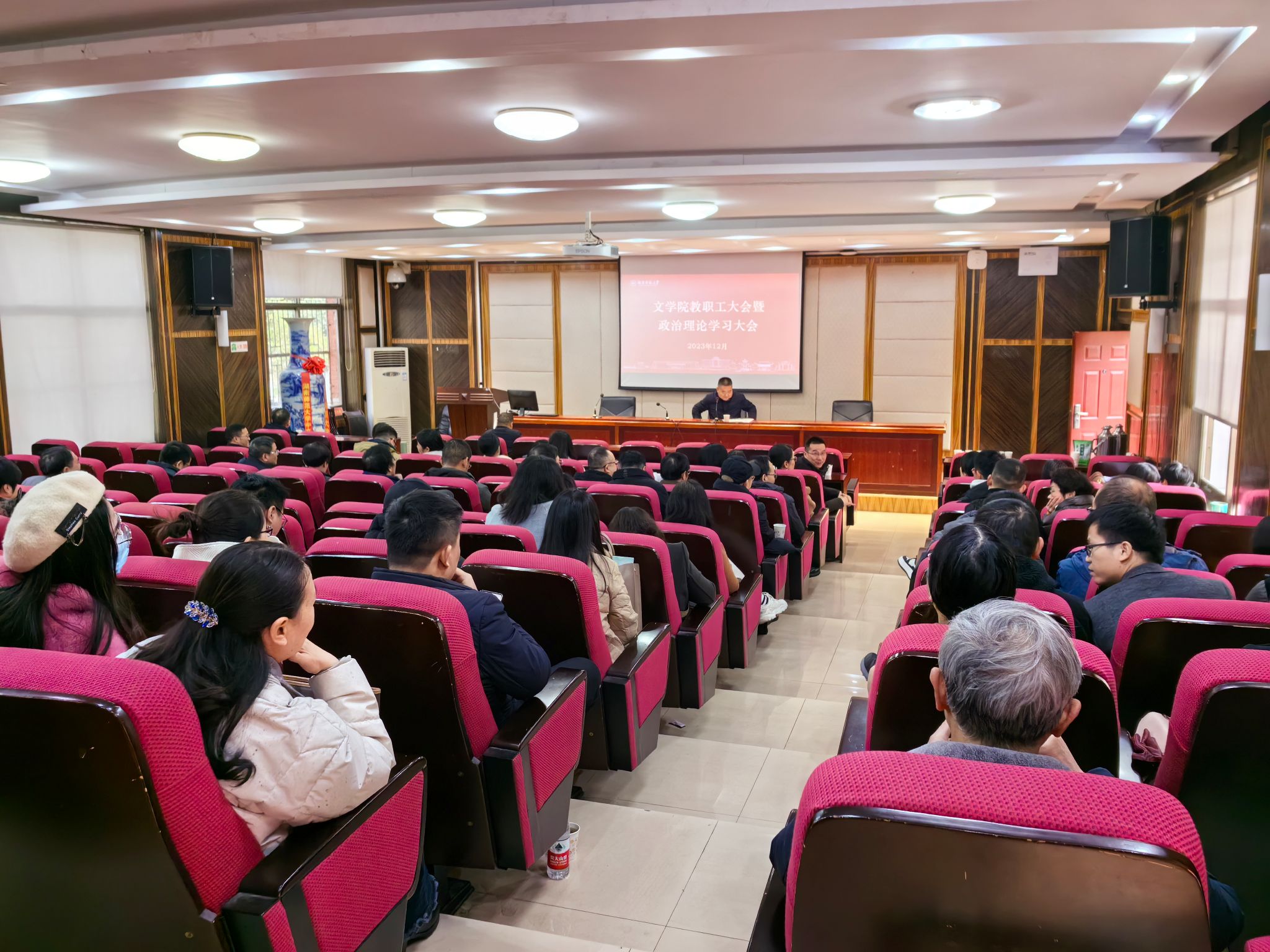 2023年12月29日上午9时,公司在216报告厅召开教职工大会暨政治理论集中学习大会,会议由公司党委书记李伶俐主持。