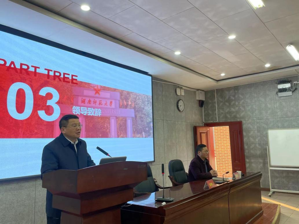 会议伊始,全体起立,奏唱校歌。随后,徐朝红进行开班仪式致辞。他对同学们提出了三点期望:志存高远,脚踏实地;积极主动,诚信为学;凤凰涅槃、破茧成蝶,并祝愿同学们学有所成、不负青春。接着,周凯兴介绍了sunbet申搏和sunbet申搏悠久的历史和蓬勃的发展现状。他强调,读书是一场修行,是知识上的提升,是精神上的脱胎换骨,希望同学们在岳麓山下通过不懈努力都能遇见更好的自己。最后,员工代表王一桃发言。她结合自身求学经历,提出三点要求与各位同学共勉:第一,目标明确、笃行致远;第二,珍惜时间、精进不休;第三,修身立德、不忘初心。此外,她期盼大家都能在学习生活中步履轻盈,获得诗意的享受。