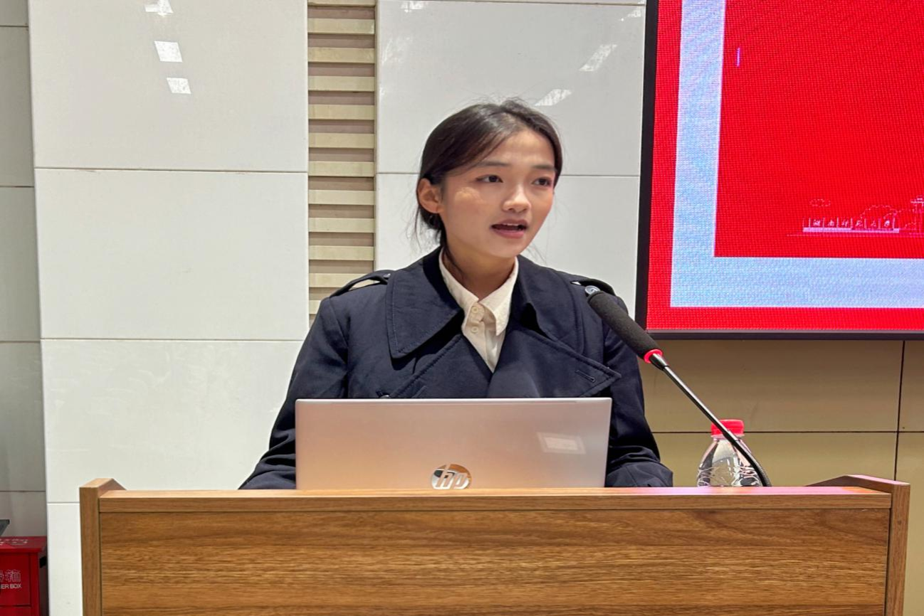 实习生代表柳刘发言。她说到,作为实习生,在教育实践的过程中,每个人都应该专心致志、练真本领,调整心态、深化认同,不懈奋斗、坚定决心。