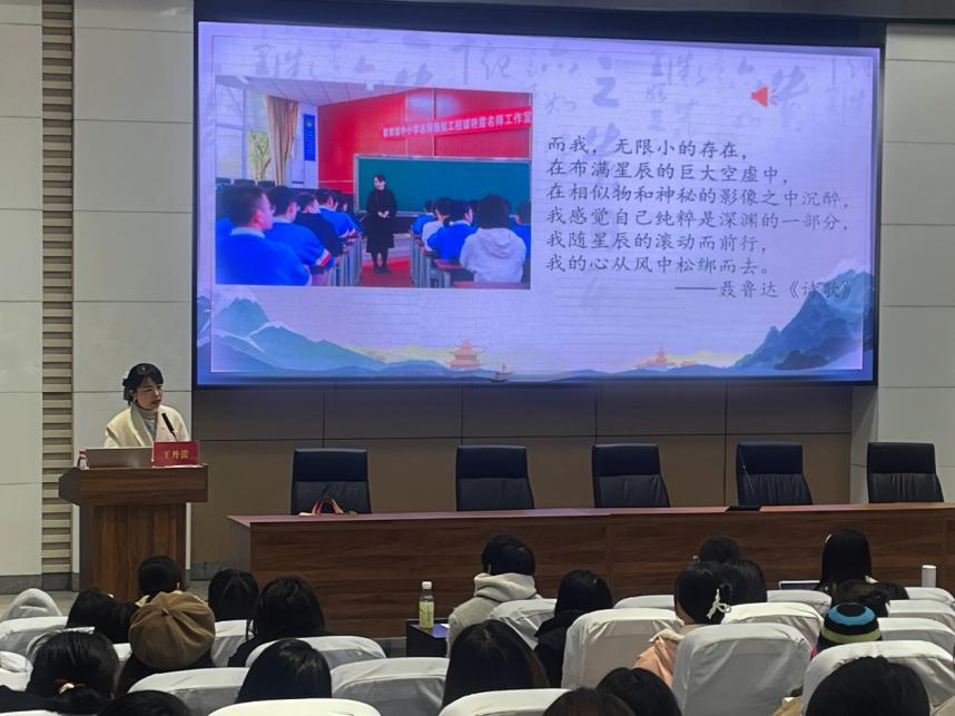 3月5日下午,王丹蕾老师从自己的名字“丹心育蕾”出发,介绍自己作为一名语文教师的成长经历,也拉开了本次教育专题系列讲座的帷幕。王丹蕾老师选择从“信仰力”、“阅读力”、“实践力”三个层面展开,条分缕析、形象生动地展示了一名优秀的语文教师所需要具备的品质。王老师强调,我们要珍惜每一次上课的机会,积累经验,聚焦课堂,让每一节课成为成长的台阶。讲座结束后,2021级辅导员周灿老师也就讲座内容对同学们的实习提出了期待和要求。