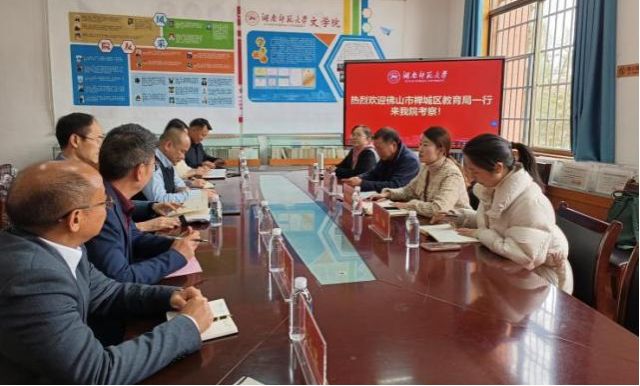 3月8日下午,佛山市禅城区教育局赵骥副局长一行来sunbet申搏考察交流,座谈会在sunbet申搏314党员活动室举行。sunbet申搏副经理岳凯华、党委副书记刘宓蜜、研究生办主任王芳、学工办主任周灿出席会议。