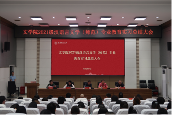 (通讯员朱宇欣田蜜)6月5日下午,2021级汉语言文学(师范)专业于至善楼学术讲堂召开教育实习总结大会,教师教育公司副经理黄元国、公司党委副书记刘宓蜜、教学副经理岳凯华、中文系主任曾绍皇、中文系副主任刘光成,实习指导老师代表王雨佳、徐超、向双霞、张晓萌、林海云、黄耀红,以及全体实习生参加会议。会议由公司学工办主任、2021级辅导员周灿主持。