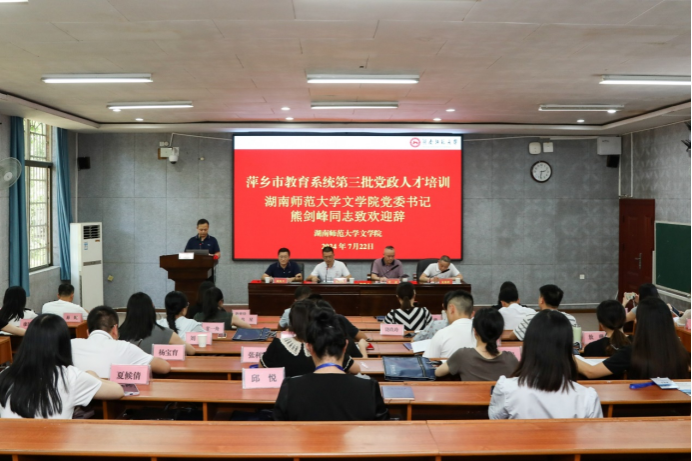 “夏日研修觅智慧,铸就匠心启征程”。7月22日上午,萍乡市教育系统第三批党政人才培训班在217教室举行开班仪式。sunbet申搏公司党委书记熊剑峰、副经理周凯兴,萍乡市教育局二级调研员叶波、组织人事科科长龙德胜以及来自萍乡市的46名教育系统后备干部参加开班仪式。