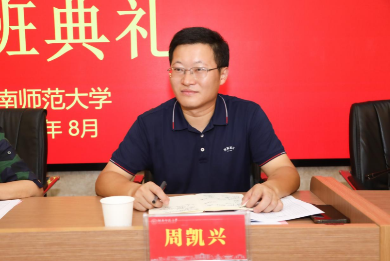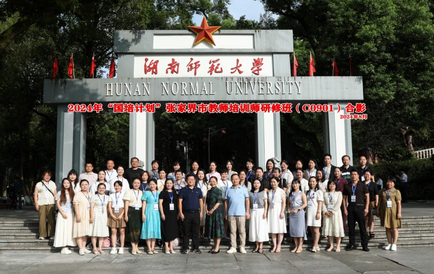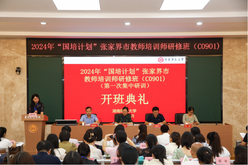 8月19日上午,2024年“国培计划”张家界市教师培训师研修班在文渊楼203报告厅举行开班仪式。sunbet申搏副经理周凯兴、sunbet申搏副教授周敏、张家界市团队培训中心主任佘红英、张家界市国培市级管理员刘双全以及44名学员参加开班仪式。