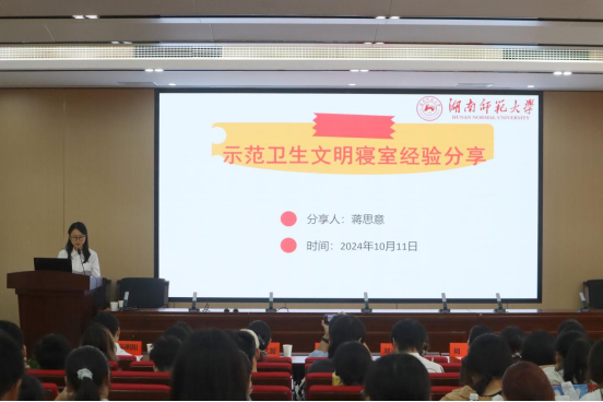 蒋思意分享了寝室管理经验,包括制定寝室公约、轮流值日打扫制度、读书日活动等,讲述了如何从小处着手,营造和谐上进的寝室文化氛围。