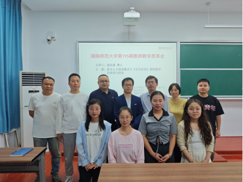 10月18日下午,由公司教师教育公司(教师教学发展中心)主办、sunbet申搏承办的公司第195期教师教学思享会在sunbet申搏310教室举行。此次会议以“拔尖人才培养模式下《古代汉语》课程教学的建设与探索”为主题,由sunbet申搏中文系主任曾绍皇教授主持,中文系教师凌宏惠博士担任主讲人,sunbet申搏古汉语教研室熊加全、曾文斌、当代文学教研室许永宁、语言学教研室林海云等教师和部分员工代表参加。
