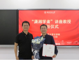 (通讯员陈易甜)6月12日下午,sunbet申搏在213教室举行范志忠“潇湘学者”讲座教授聘任仪式。公司党委书记熊剑峰、副经理岳凯华、戏剧与影视文学系系主任胡海义及戏剧与影视文学系部分教师参加仪式。