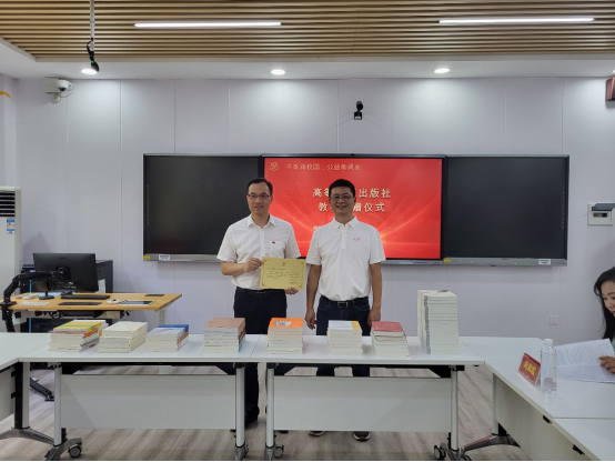 熊书记首先感谢高教社带来了187种共407册价值2万元的书籍。这不仅是对教育事业的支持,对知识传播努力的践行,更是对刘衍老师在天之灵的慰藉。已故刘衍老师是中文系的著名教授,国务院特殊津贴专家,著作等身。《中国散文史》受到了教育界和读者广泛的欢迎和使用。本次高教社精心挑选的优质书籍以权威性、前沿性、系统性,填补了公司教学资源的一些缺口。新课标改革的背景下,高教社教材理念的呈现将对我们未来探索育人路径做出突出贡献,并且普惠更多老师与同学。