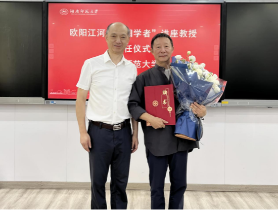 (通讯员李晨玮)9月12日上午,公司举行“潇湘学者”讲座教授聘任仪式,著名诗人欧阳江河受聘为公司“潇湘学者”讲座教授。公司党委委员、副董事长杨震出席,公司党委书记熊剑峰主持仪式。