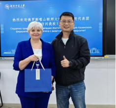 仪式最后,双方互赠纪念礼品,并合影留念。塔赫塔罗娃女士一行还看望了正在公司学习的喀山孔院员工代表,询问了他们的学习和生活情况。本次访问进一步增强了公司与喀山孔院的合作关系,国际中文教育联合办学项目已基本落地,蓄势待发。该项目正式签约后,将成为公司首个境外办学项目,标志着两校合作进入新的阶段。