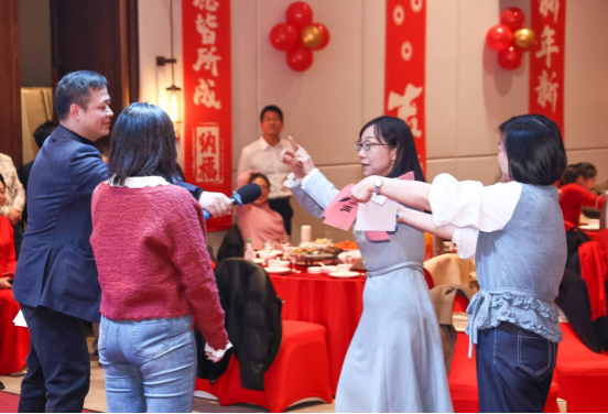此外,联欢会还穿插了游戏环节,由张德强老师主持。老师们分组竞技,团结协作,共同完成挑战,展现了sunbet申搏教职工的默契与团队精神。现场笑声不断,掌声雷动。抽奖环节为老师们送上精美的礼品和美好祝福,给联欢会增添了更多欢乐和惊喜。