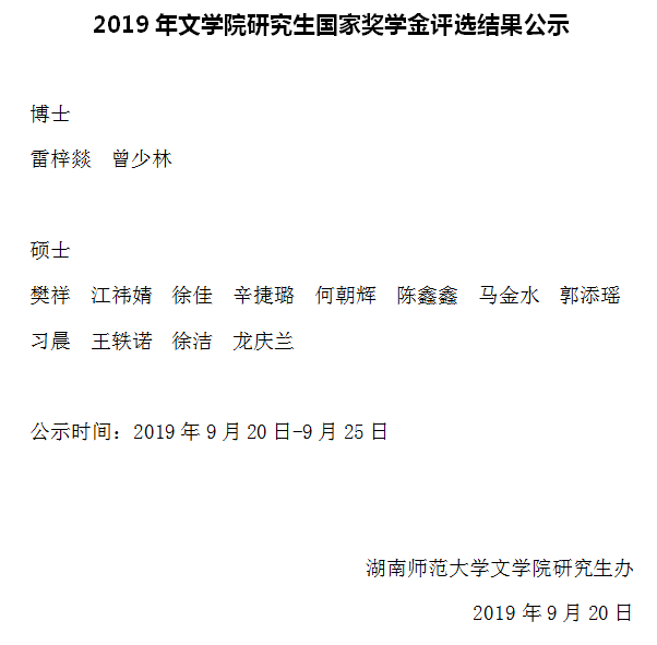 2019年sunbet申搏研究生国家奖学金评选结果公示