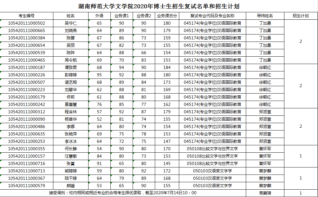 2020年博士招生复试名单和招生计划(更新)