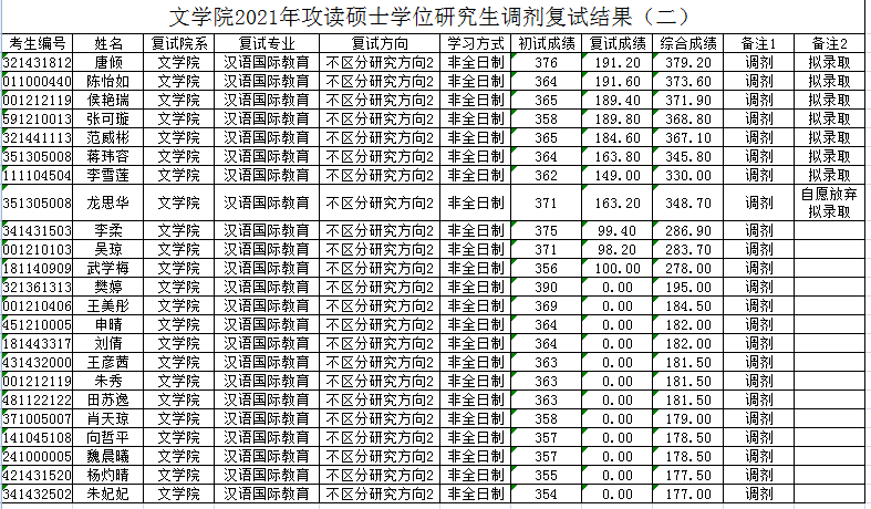 2021年攻读硕士学位研究生调剂复试结果(二)