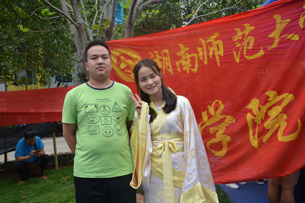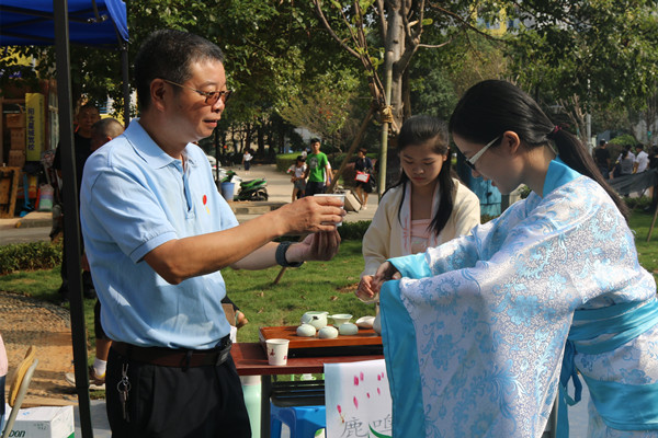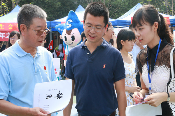 集团领导来到现场视察迎新工作,慰问各单位迎新工作人员,看望新生和家长,并与家长新生一起参与创意迎新活动,观看汉服表演、翻看sunbet申搏迎新专刊《号角》、共同品尝鹿鸣茶艺社所沏的毛尖、龙井。