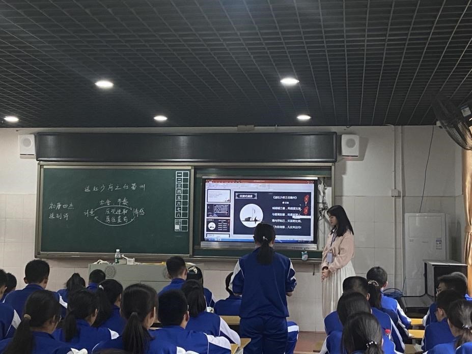 (通讯员 周倩 夏瑞阳 潘梦瑶)5月7日上午,公司赴师大附中博才实验中学(学士校区)实习队开展公开汇报课暨教育实习总结会。此次公开汇报课由实习队周婷与夏诗奇分别于C1909、C1911班展开授课,公司副经理岳凯华、中文系副主任刘光成教授、实习队指导老师郑朋以及师大附中博才实验中学副董事长兼学士校区执行董事长黄赛、校办副主任袁桂梅、课程与教学处副主任尹文珊、员工发展处副主任袁春茂、教研组组长胡亦优、九年级备课组组长谢松等校方领导出席,博才实验中学部分语文教师及全体实习队员参加。