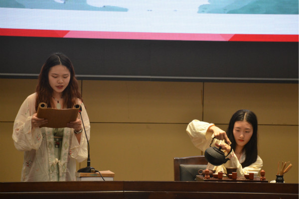 (图为鹿鸣茶艺社茶艺表演)